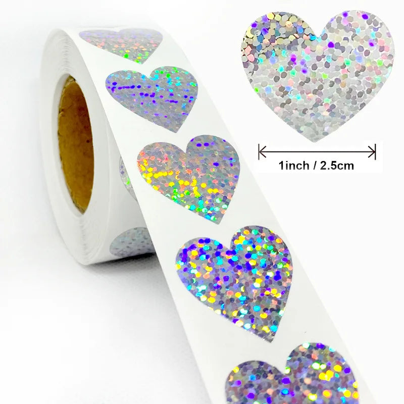 50-500pcs Rainbow Laser Heart Stickers For Envelope Sealing Labels Stationery Supplies Handmade Wedding Gift Decoration Sticker