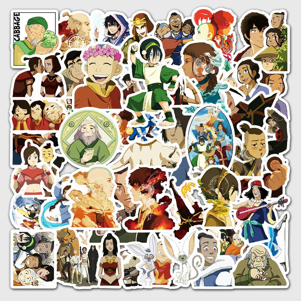 50PCS Anime Avatar The Last Airbender Waterproof Stickers DIY Skateboard Guitar Laptop Cool Cartoon Decal Kids Toy Sticker