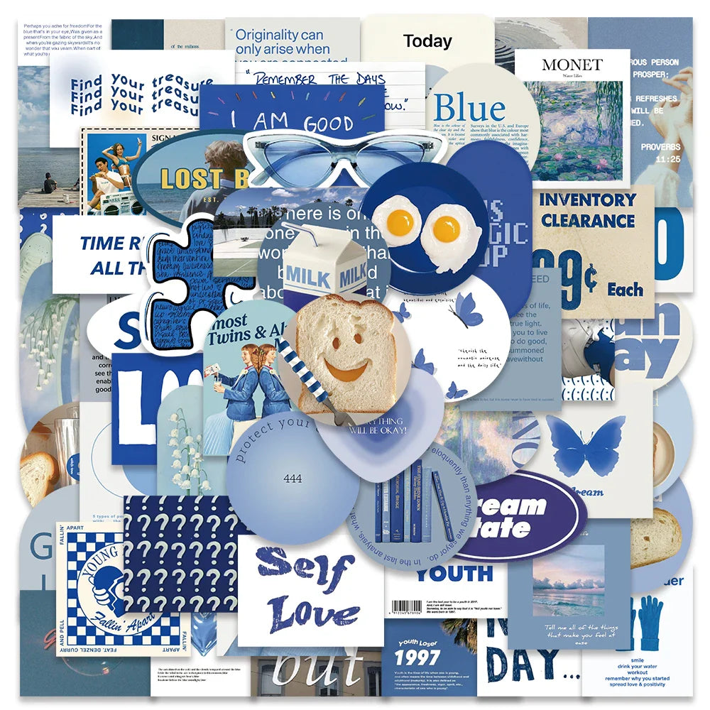 50pcs Blue Aesthetic Stickers Vinyl Decals Laptop Luggage Phone Guitar Water Bottle Car Waterproof