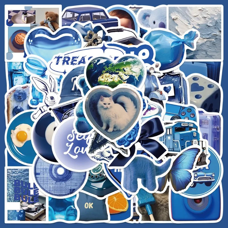 50pcs Cartoon Blue Love Graffiti Stickers for Helmet, Wall, DIY Decoration Wholesale