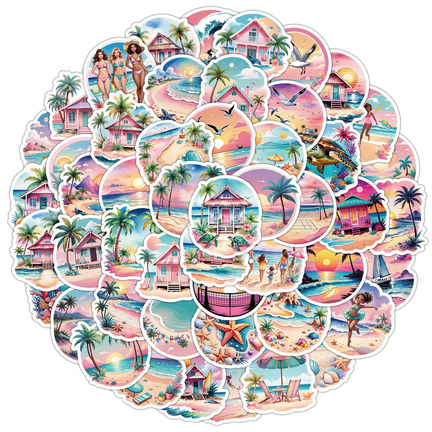 50Pcs Beach Cartoon Graffiti Stickers for Helmet, Wall, DIY Decoration