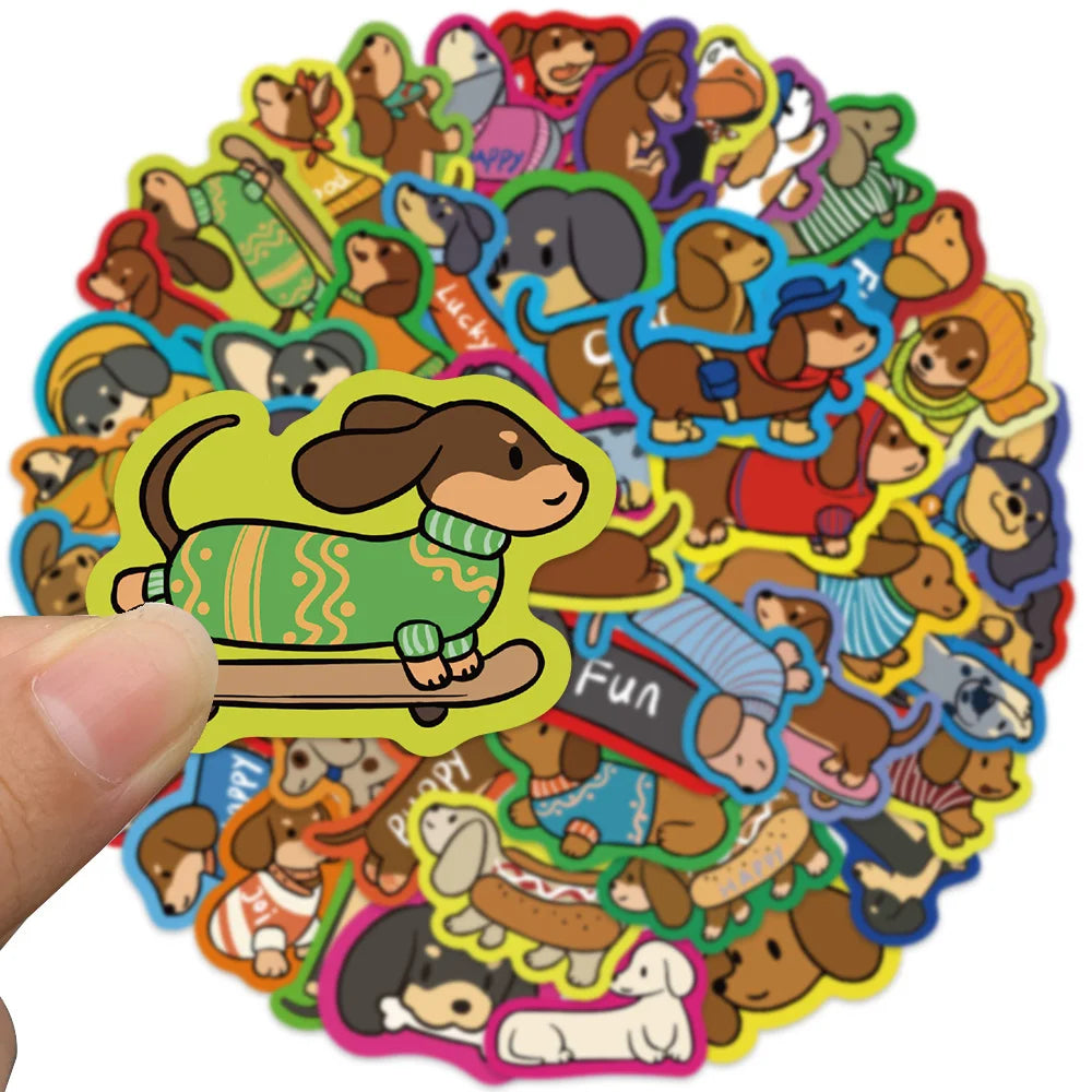 50pcs Dachshund Cartoon Animal Stickers Waterproof for Kids, Luggage, Laptop, Guitar, Phone