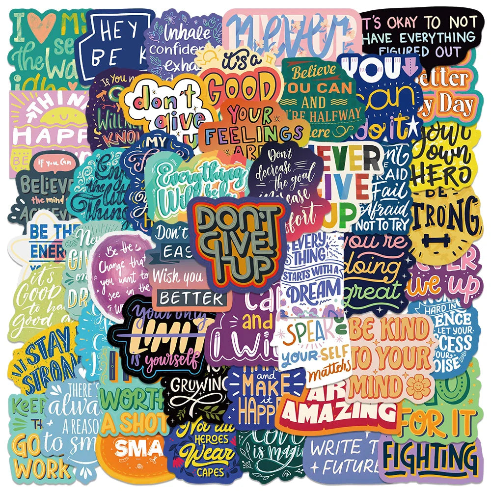 50pcs Funny Cartoon Colorful Motivational Phrases Stickers Inspirational Quotes Stickers For Laptop Luggage Guitar Vinyl Decals
