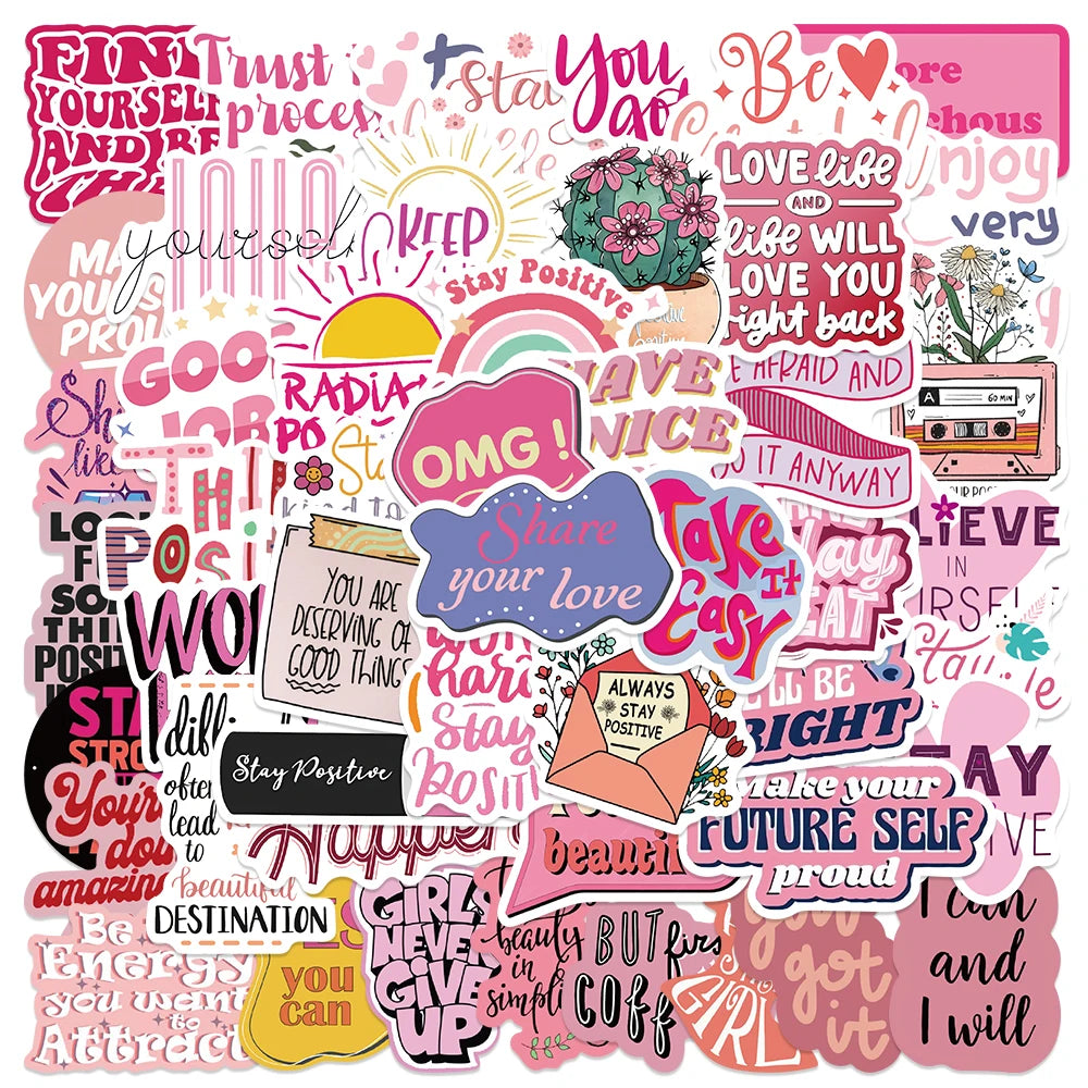 50pcs Funny Cartoon Pink Motivational Stickers Inspirational Phrases Sticker For Luggage Laptop Guitar Phone Waterproof Decals