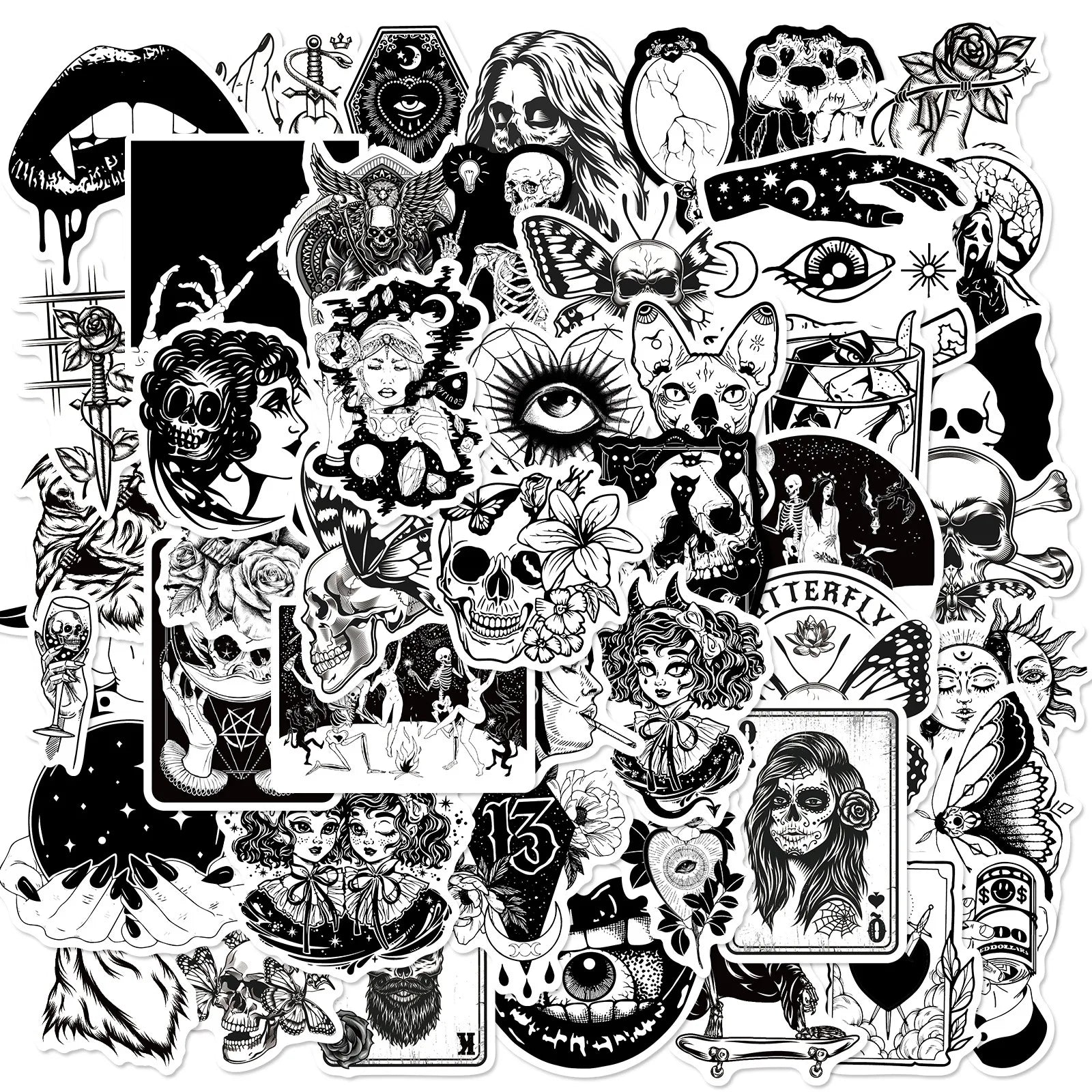 50pcs Gothic Skull Stickers for Teens, Cool Punk Horror Stickers for Laptop and Luggage