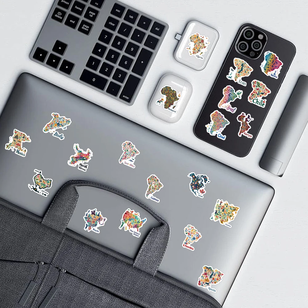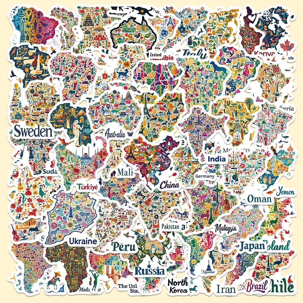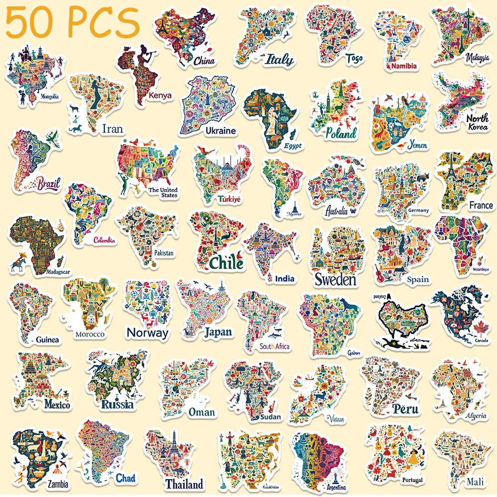 50pcs Maps In cultural Symbols And Icons Stickers Aesthetic Decals For Laptop Skateboard Suitcase Guitar Waterproof Stickers