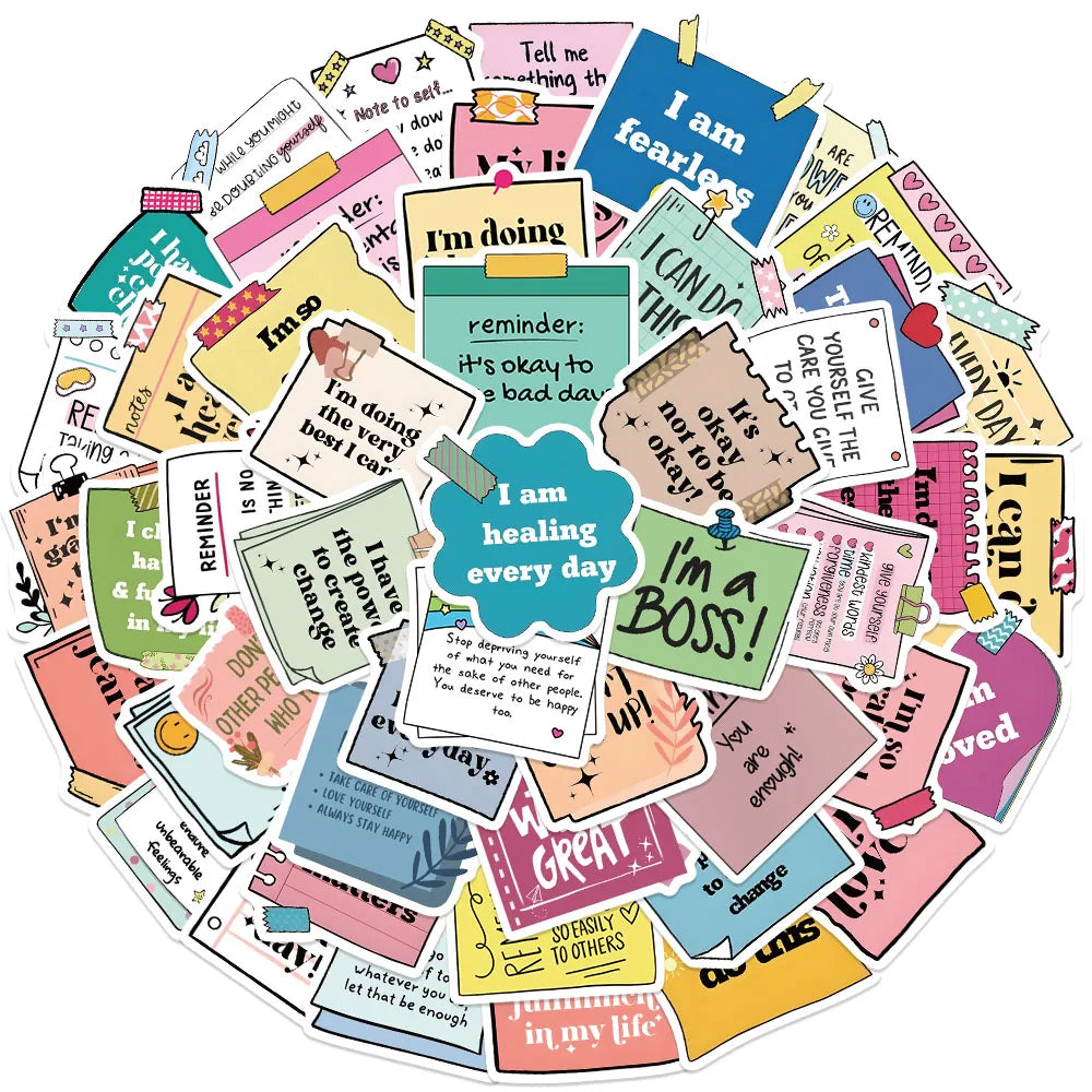50pcs Motivational Stickers Cute Cartoon Self-affirmation Sticker For Laptop Water Bottle Luggage Notebook Phone Vinyl Decals