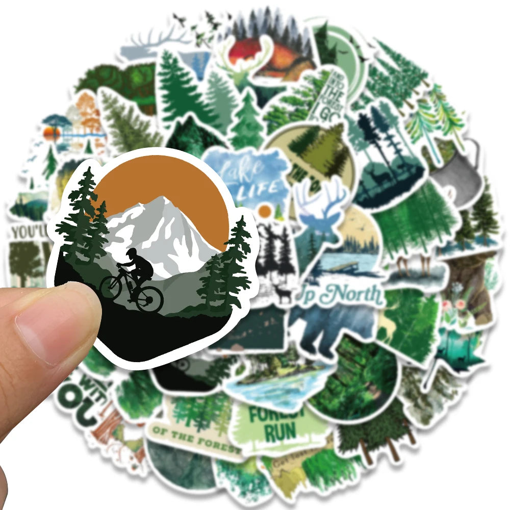 50pcs Outdoor Forest Trees Stickers Vinyl Waterproof For Laptop Guitar Luggage Bike Notebook Scrapbook Stickers Decals