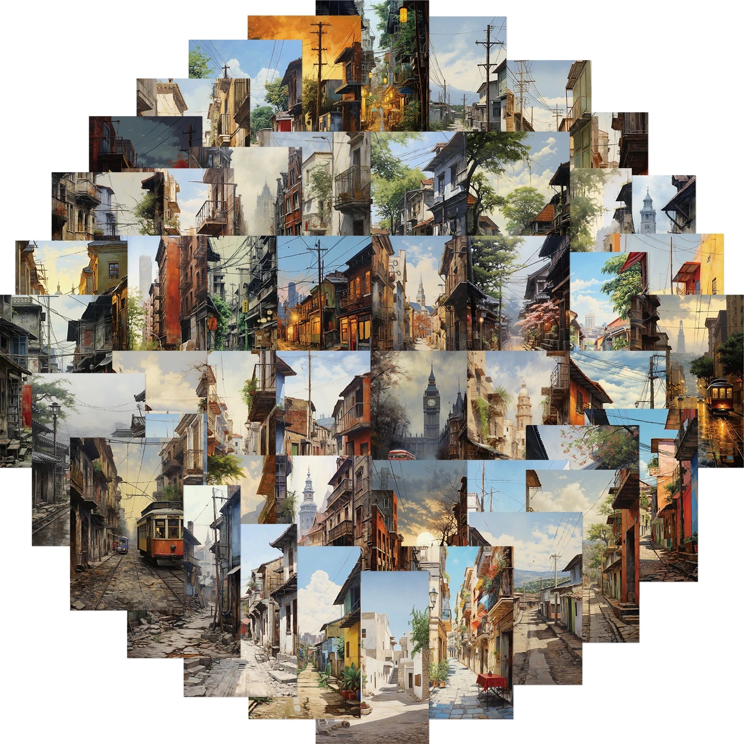 50pcs Retro City Street Stickers for Guitar, Bike, Laptop