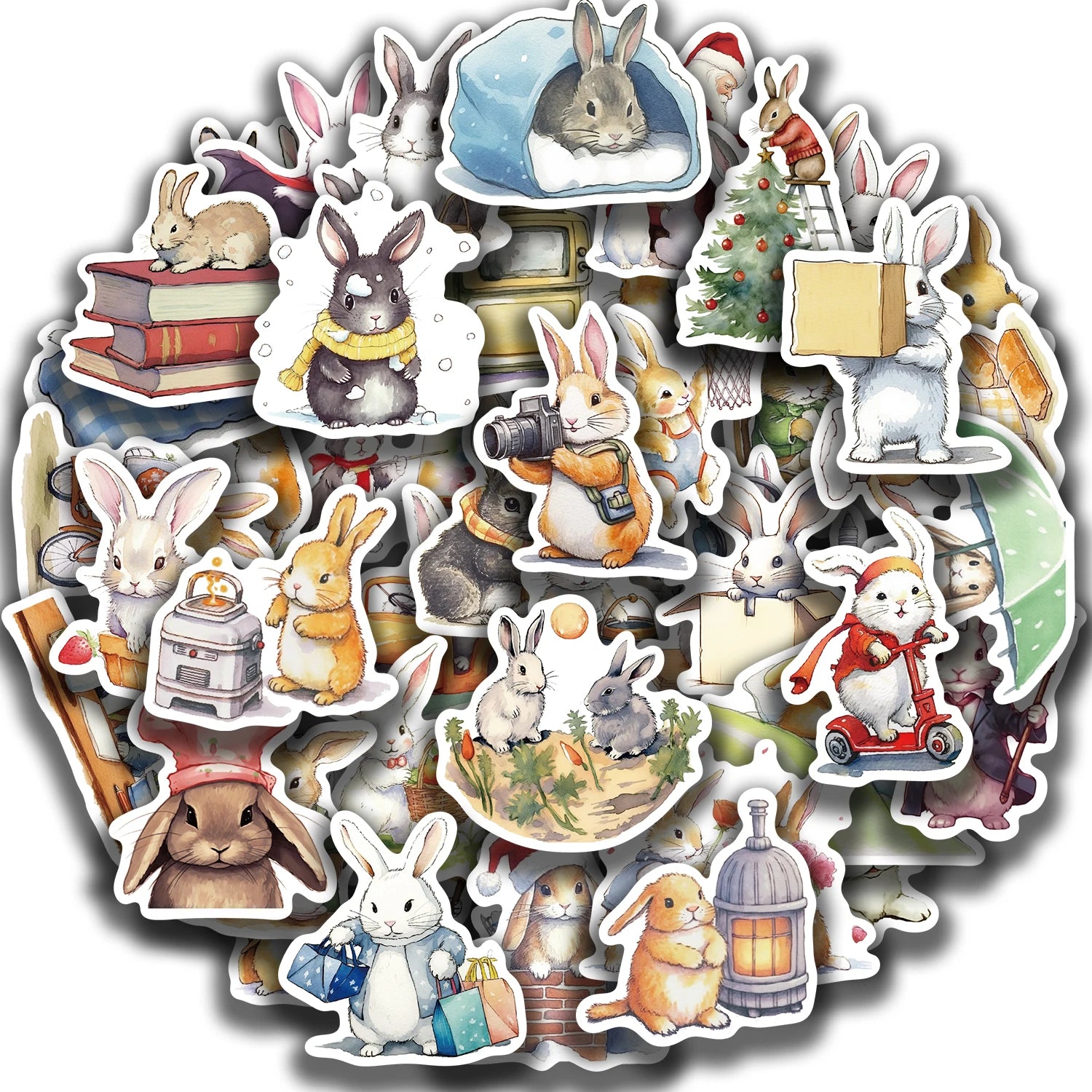 50pcs Cute Bunny Stickers: Waterproof Vinyl Decals