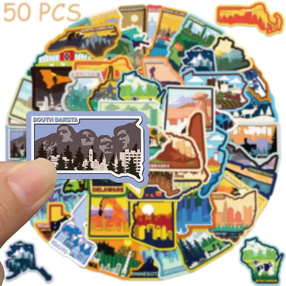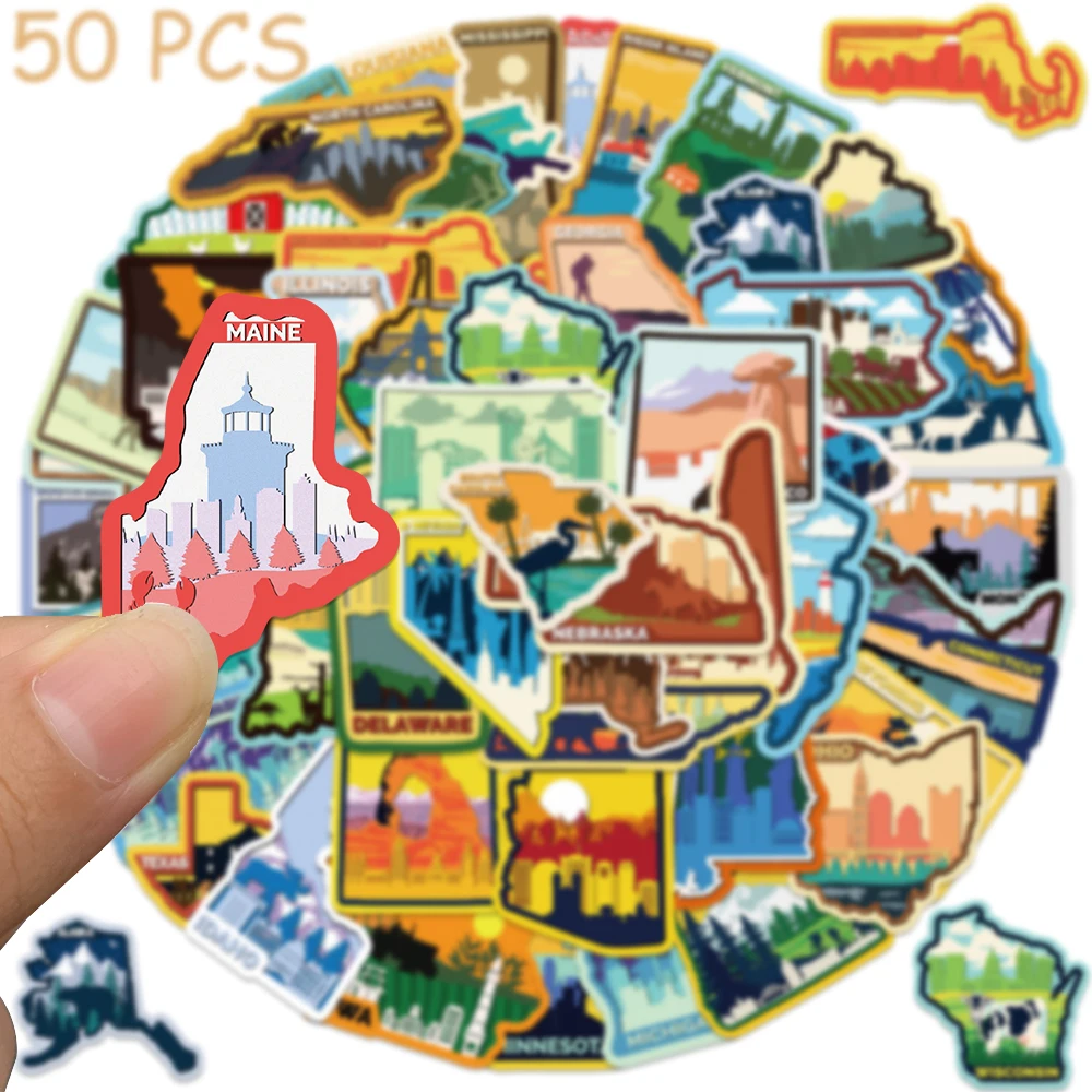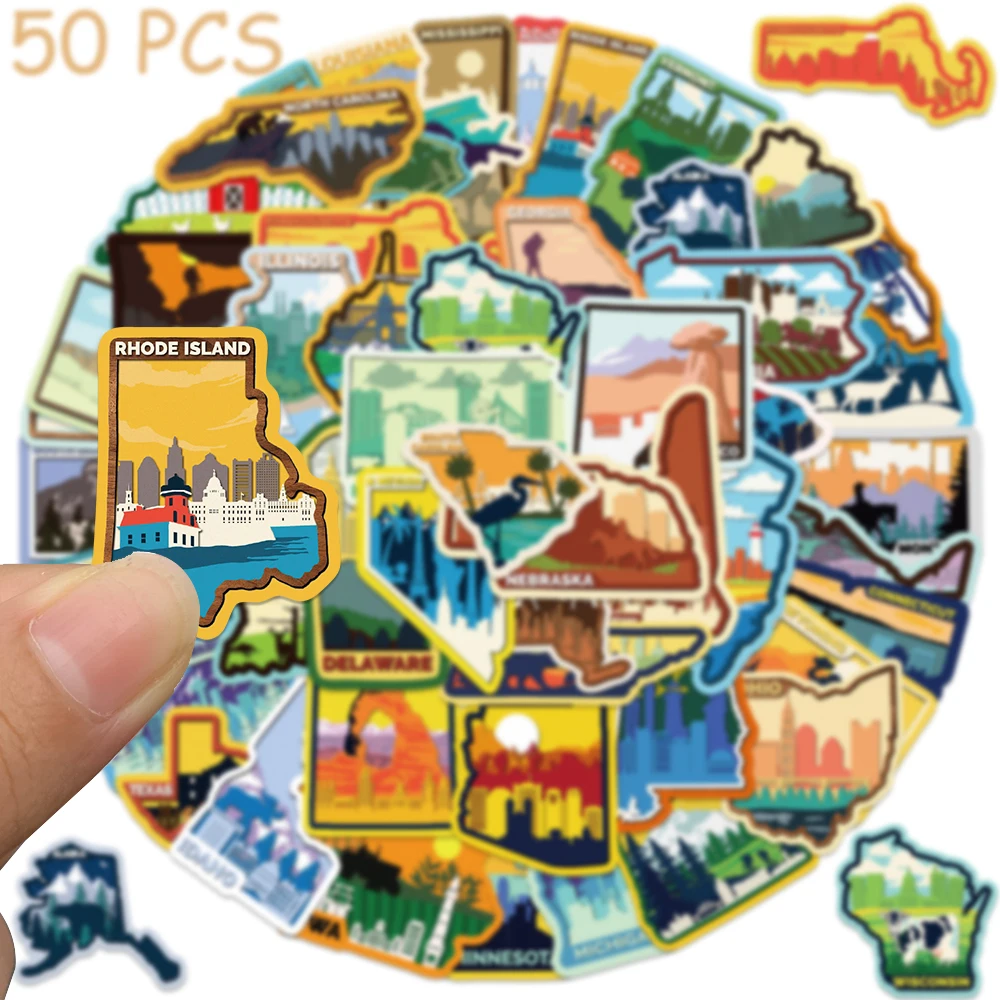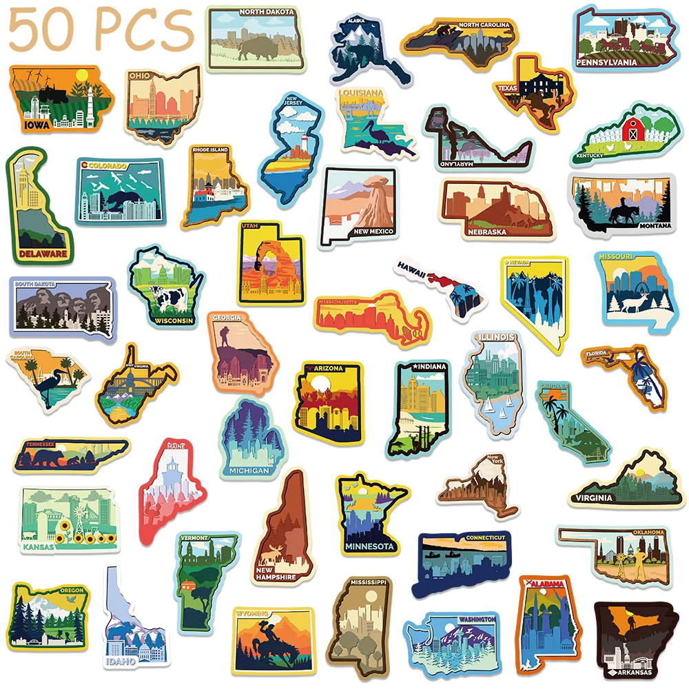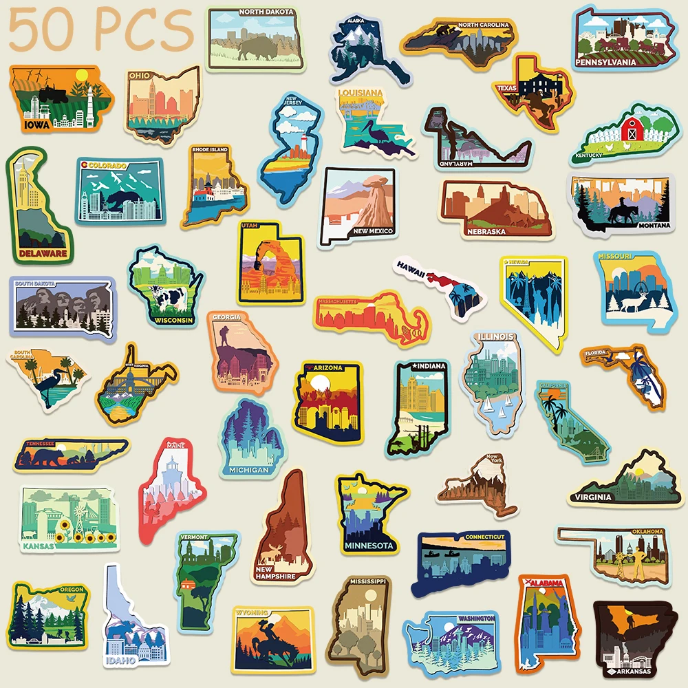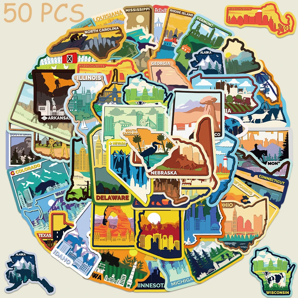 50pcs Various Continents In America Stickers Decals For Phone Laptop Luggage Skateboard Scrapbook Cartoon Aesthetic Stickers