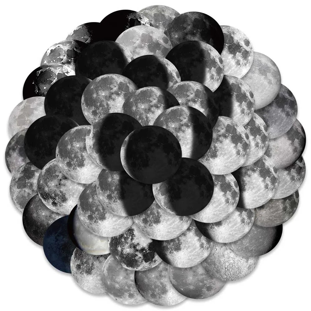 50pcs Moon Phase Vinyl Stickers Waterproof for Laptop, Luggage, Water Bottle, Phone