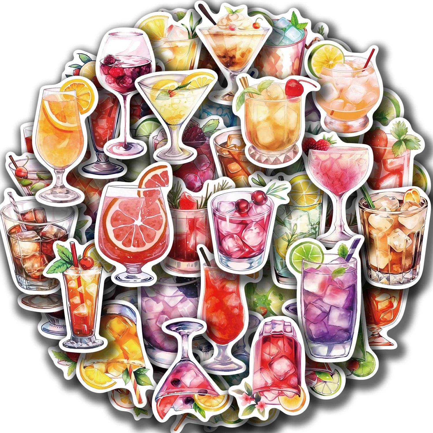 50pcs Watercolor Cocktail Stickers for DIY Crafts