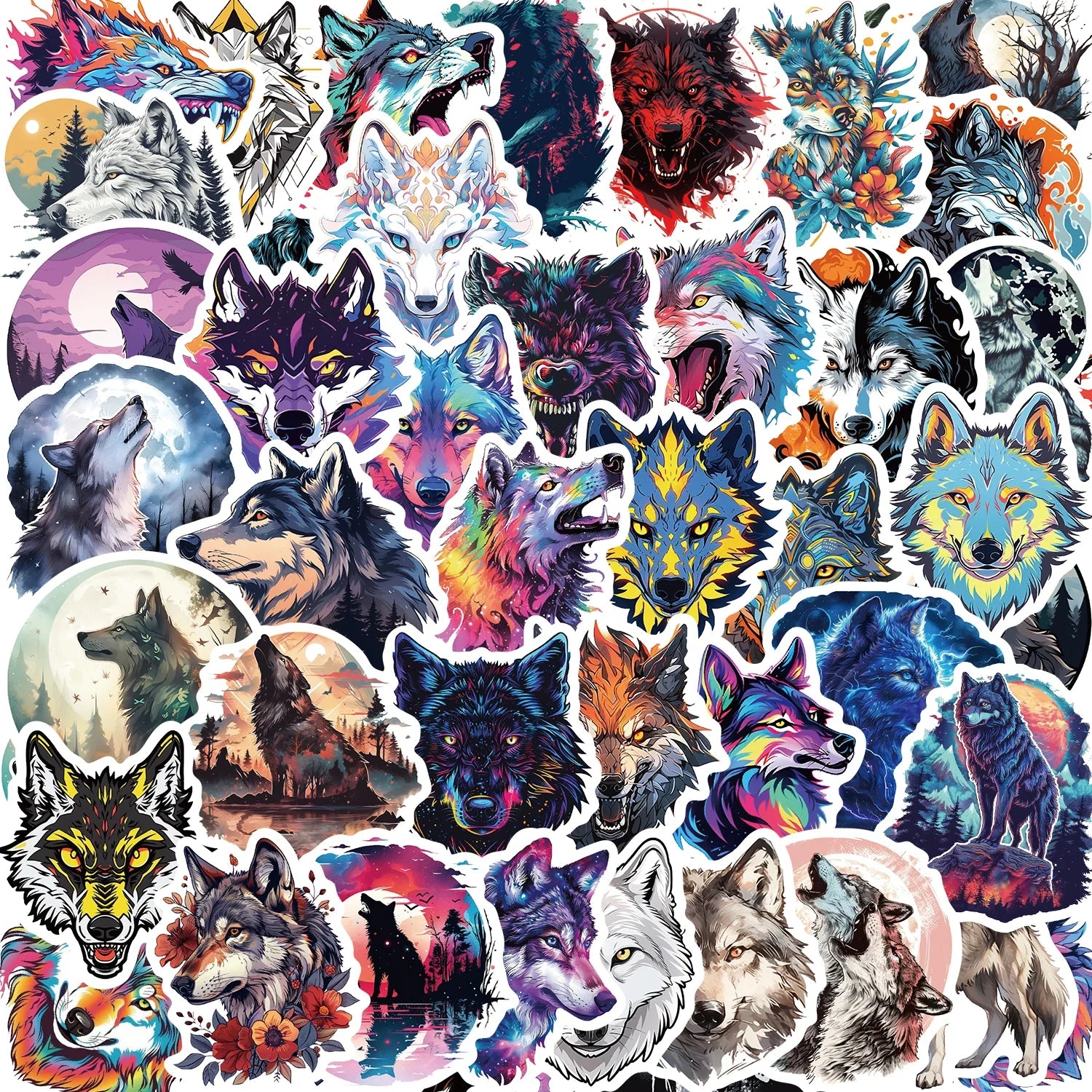 Unleash your wild side with our 50pcs Wolf Stickers! These waterproof, cool, dark animal decals are perfect for personalizing laptops, water bottles, skateboards, and more. Made from high-quality vinyl, they resist fading and peeling, ensuring long-lasting durability. Ideal for wolf lovers and outdoor enthusiasts, these stickers add a fierce touch to any surface. Easy to apply and remove, they leave no residue. Elevate your style with these unique wolf decals today!