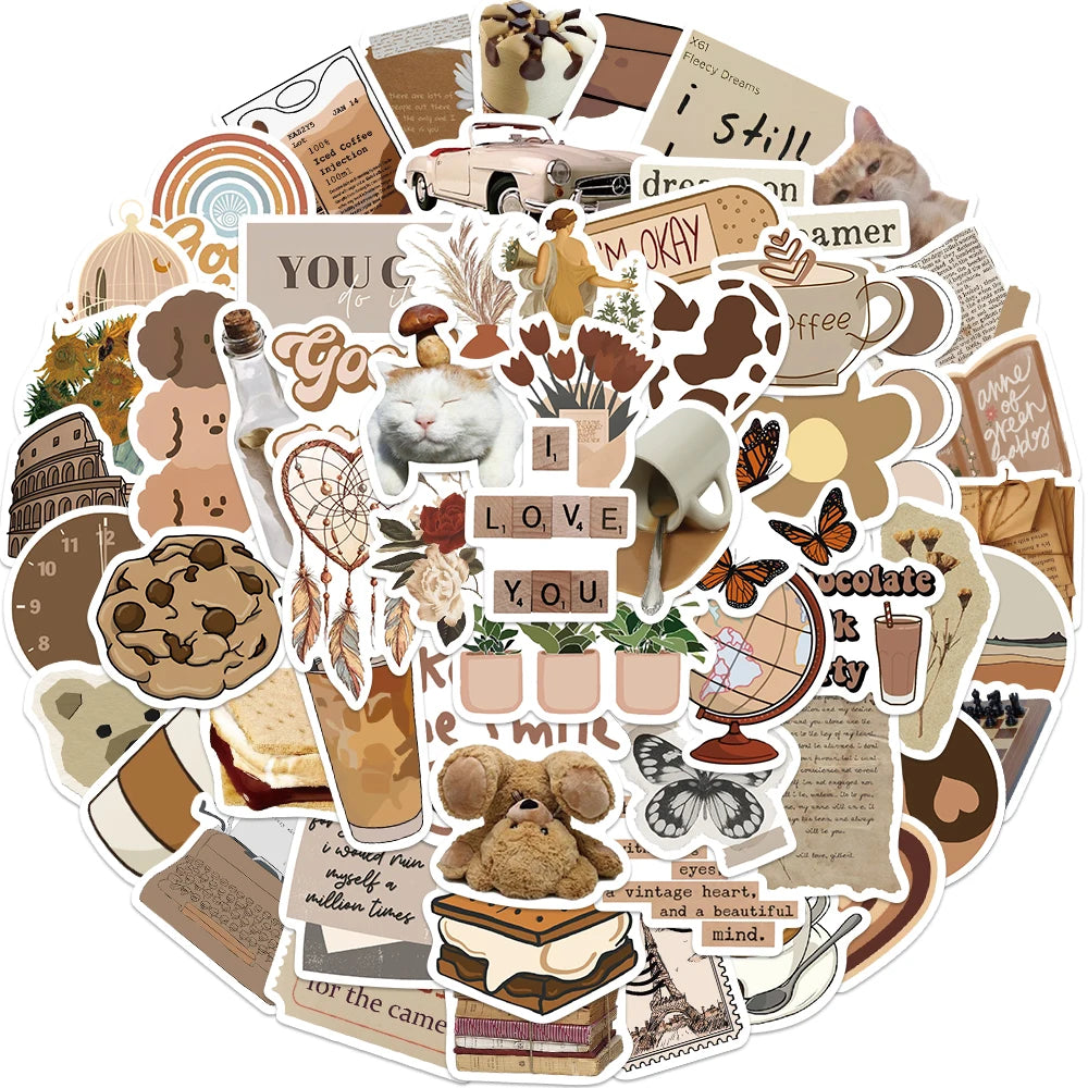60pcs Retro Art Vsco Stickers Aesthetic Cartoon Decals for Laptop, Luggage, Skateboard, Phone