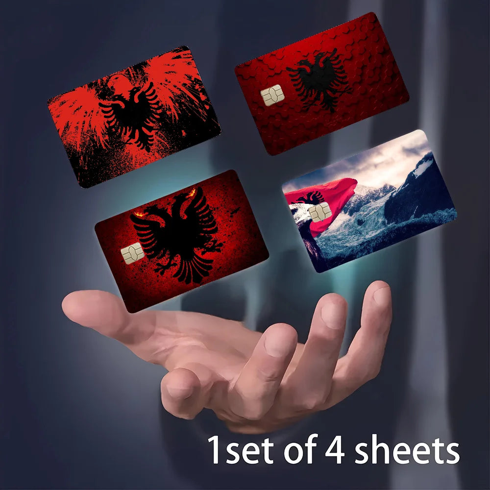 Albania Flag Anime Card Skin Stickers Set 4pcs