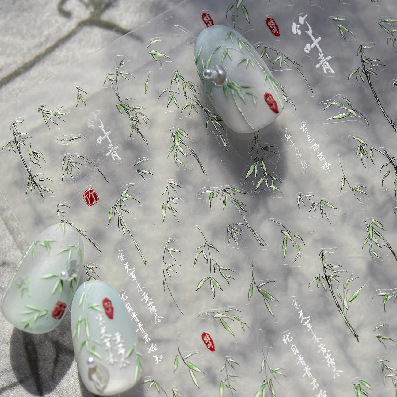 5D Bamboo Leaf Nail Art Stickers - Pink & Green Decals