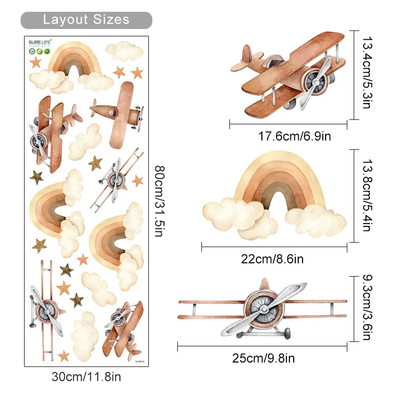 Boho Cute Airplane Rainbow Star Nursery Wall Decals Kids Room Decor
