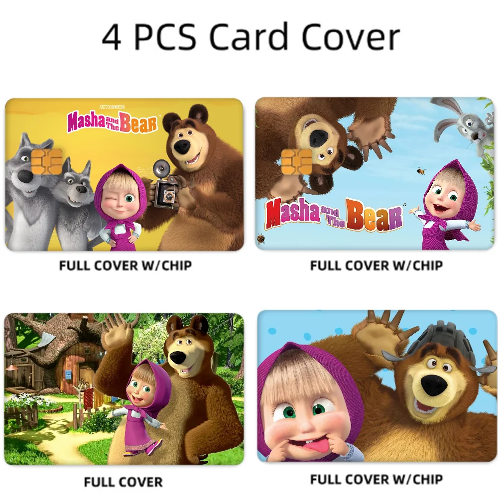 Masha & Bears Card Sticker Set - 4 Pcs Cover for Debit/Credit