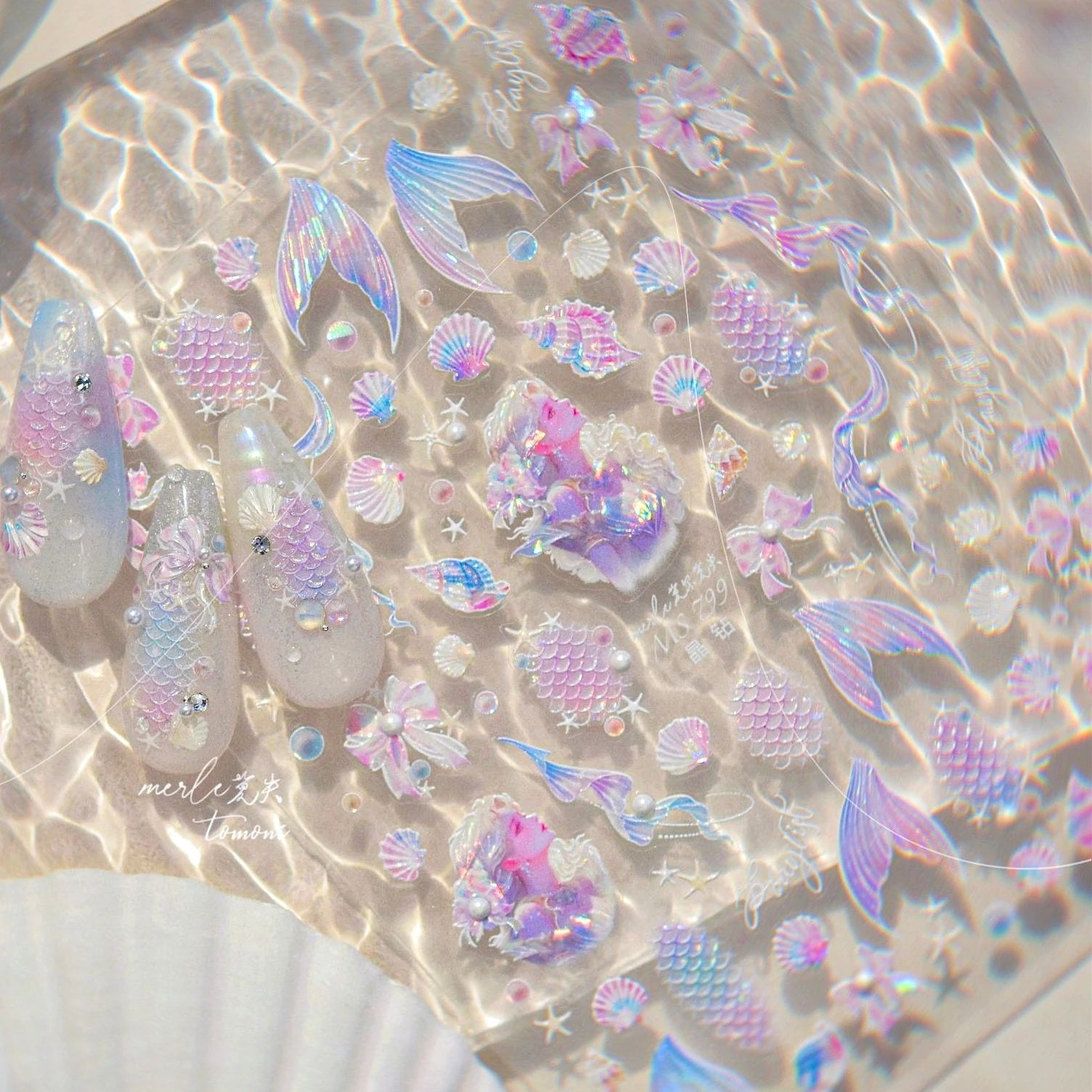 Mermaid Nail Art Stickers: Shell, Starfish, Fish Scale Design